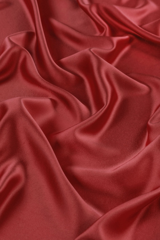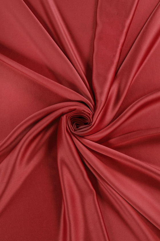 Itališkas cadi suknelės audinys tamsiame korale. Viena vertus, jis yra kilniai blizgus, kita vertus, jis yra matinis - jis gali būti siuvamas iš abiejų pusių. Sunkus, mėsingas, neelastingas audinys - puikiai tinka suknelės, sijono, palaidinės siuvimui.