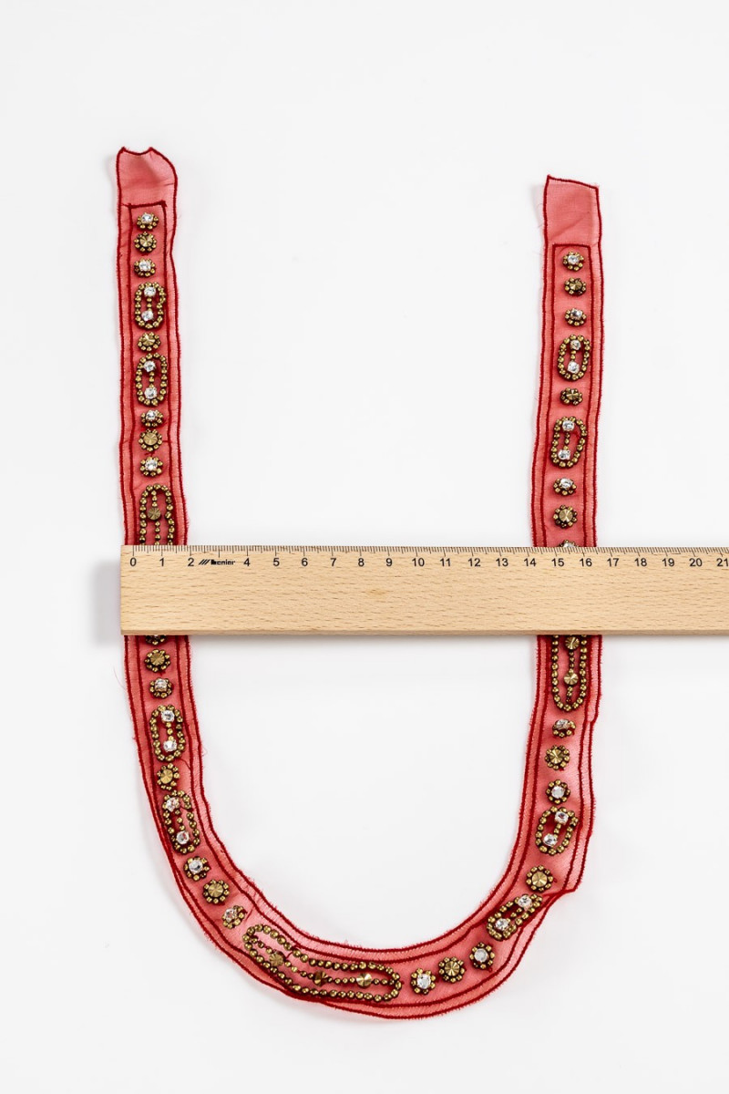 Raudona aplikacija su aukso karoliukais - iškirptė