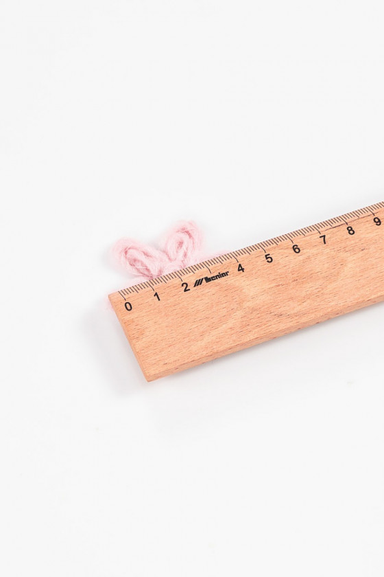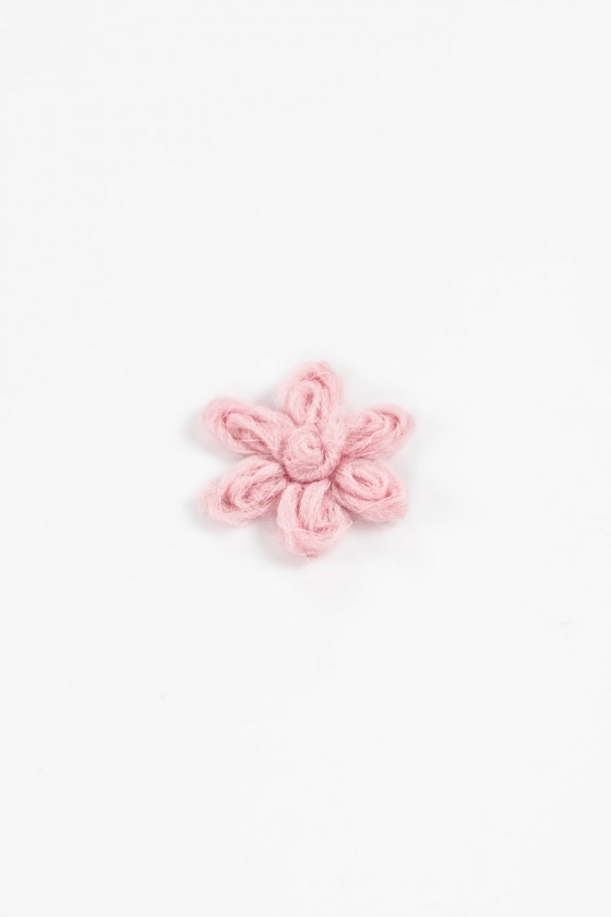 Graži paraiška 5 cm dydžio gėlės pavidalu, pagaminta iš natūralios vilnos, purvinos rožinės spalvos.