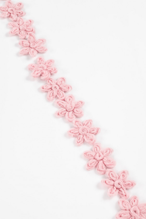 Graži paraiška 5 cm dydžio gėlės pavidalu, pagaminta iš natūralios vilnos, purvinos rožinės spalvos. Puikiai tinka dekoruoti megztinį, suknelę, paltą.