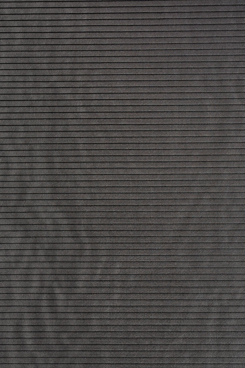 Itališkas audinys 100% šilkas, plisuotas pilka spalva. Audinys klijuojamas plonu įdėklu. Audinys yra plonesnis, šiek tiek standus, plisuotas aplink apskritimą su šilko audiniams būdingu blizgesiu.