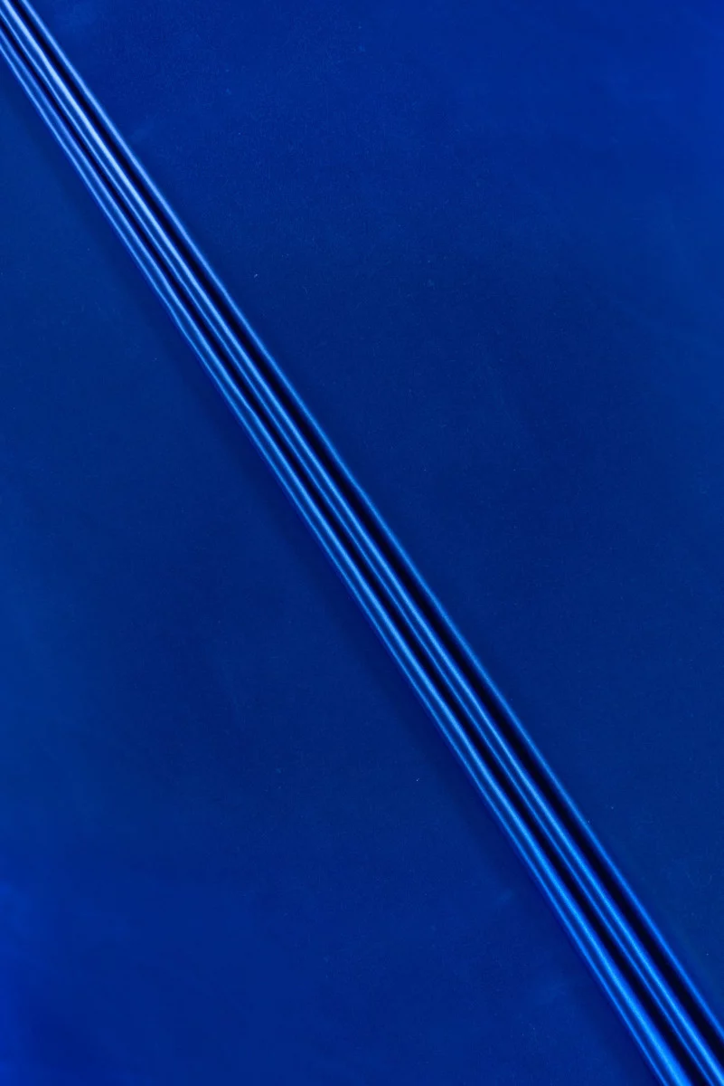 Itališka medvilnės šilko tafta su satino pynimu šviesios rugiagėlių spalvos. Audinys yra storesnis, standus, vienoje pusėje blizgus, o kitoje - matinis. Jis tinka tiek drabužiams, tiek vidaus apdailai.