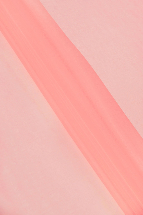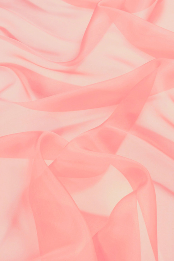 Itališkas 100% šilko organzos audinys šviesios koralų spalvos. Natūralaus šilko organza yra plonas, skaidrus, bet standus audinys, pasižymintis subtiliu blizgesiu, būdingu šilko audiniams. Puikiai tinka siūti suknelę, palaidinę, marškinius, sijoną.