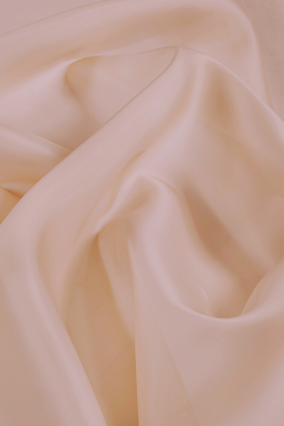 Itališkas 100% šilko organzos audinys šviesiai rausvos spalvos. Natūralaus šilko organza yra plonas, skaidrus, bet standus audinys, pasižymintis subtiliu blizgesiu, būdingu šilko audiniams.