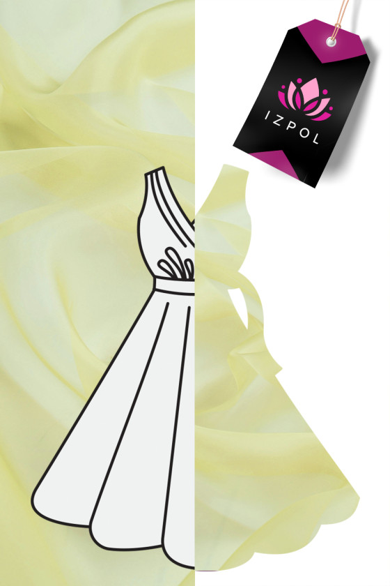 Itališkas 100% šilko organzos audinys pastelinės geltonos spalvos. Natūralaus šilko organza yra plonas, skaidrus, bet standus audinys, pasižymintis subtiliu blizgesiu, būdingu šilko audiniams. Puikiai tinka siūti suknelę, palaidinę, marškinius, sijoną.