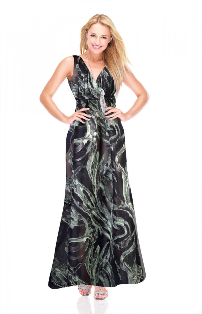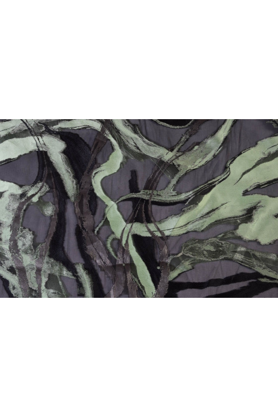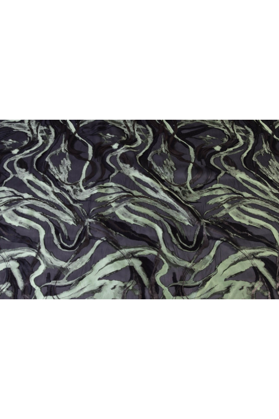 Graži šilko-poliesterio organza su siuvinėtais raštais. Organza yra neelastingas, šiek tiek standus audinys. Puikus pasiūlymas suknelėms, sijonams, palaidinėms.