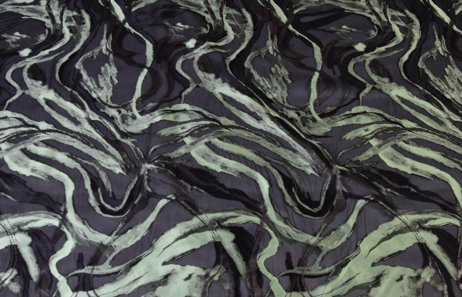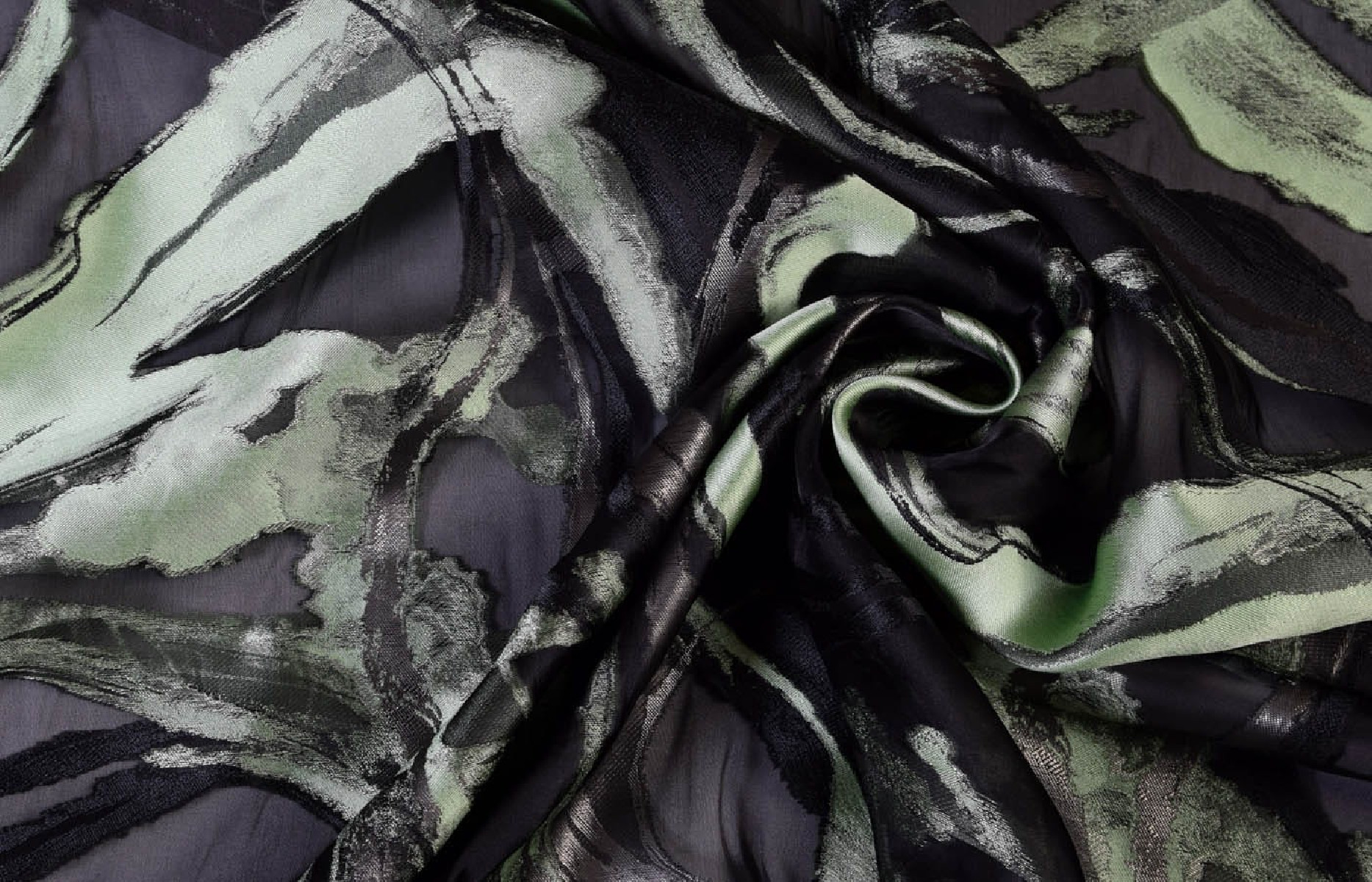 Graži šilko-poliesterio organza su siuvinėtais raštais. Organza yra neelastingas, šiek tiek standus audinys.