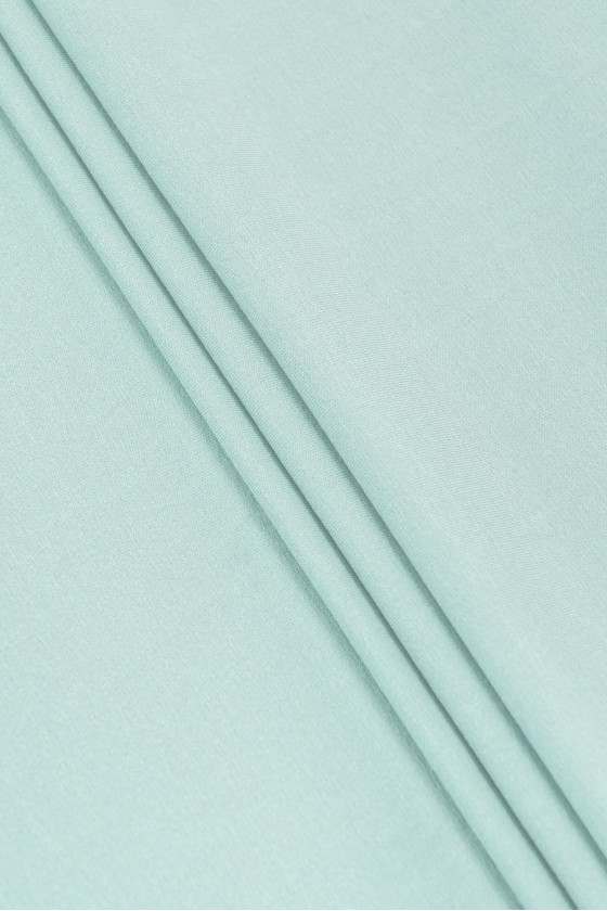 Itališkas viskozės megztas audinys šviesiai mėtų spalvos - labai geros kokybės. Mėsingas, elastingas, šiek tiek blizgantis.