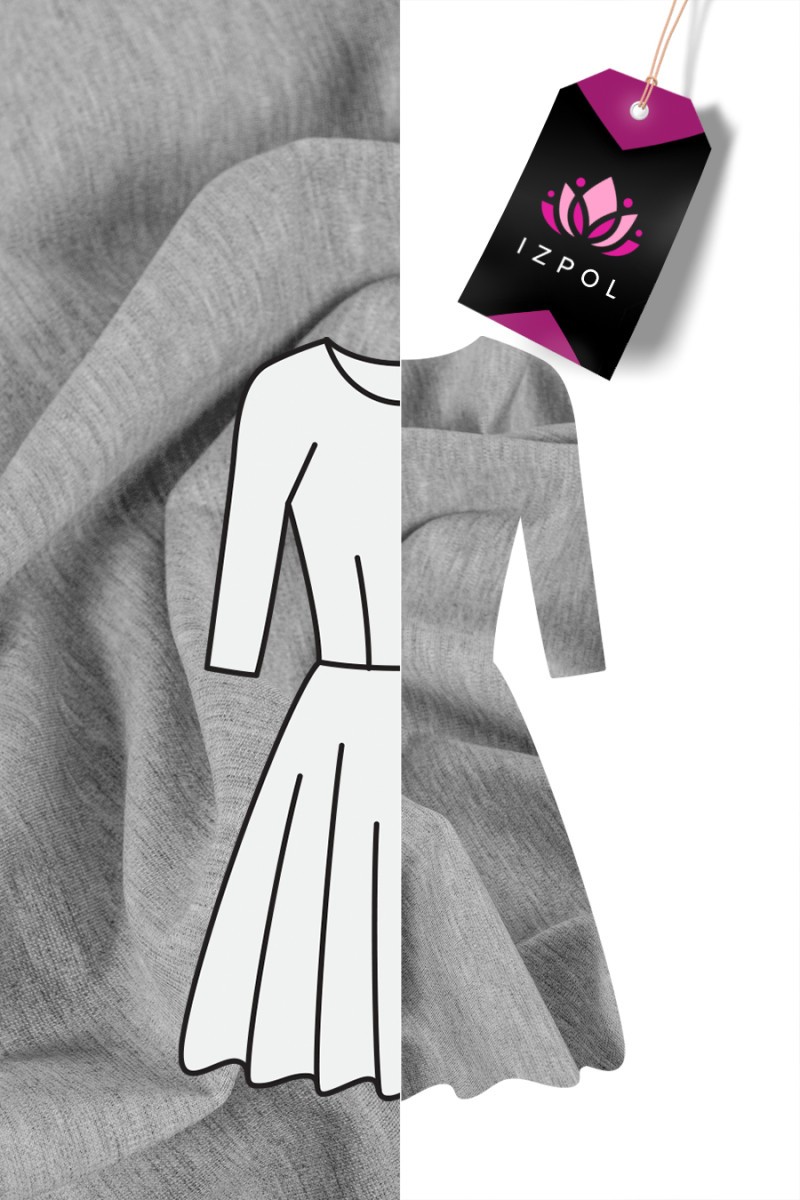 Itališkas viskozės trikotažinis megztas audinys šviesiai pilkos spalvos - melange. Džersio audinys yra dengiamasis, švelniai aptraukiantis megztas audinys, kurį galima siūti be pamušalo. Tai puikiai tinka kasdienėms suknelėms, sijonams, švarkams. Prieš siuvant rekomenduojame iš anksto susitraukti.