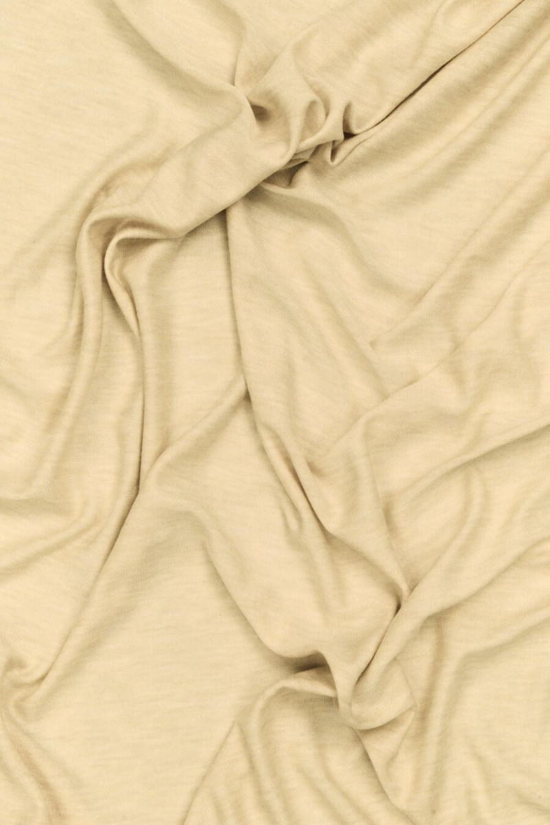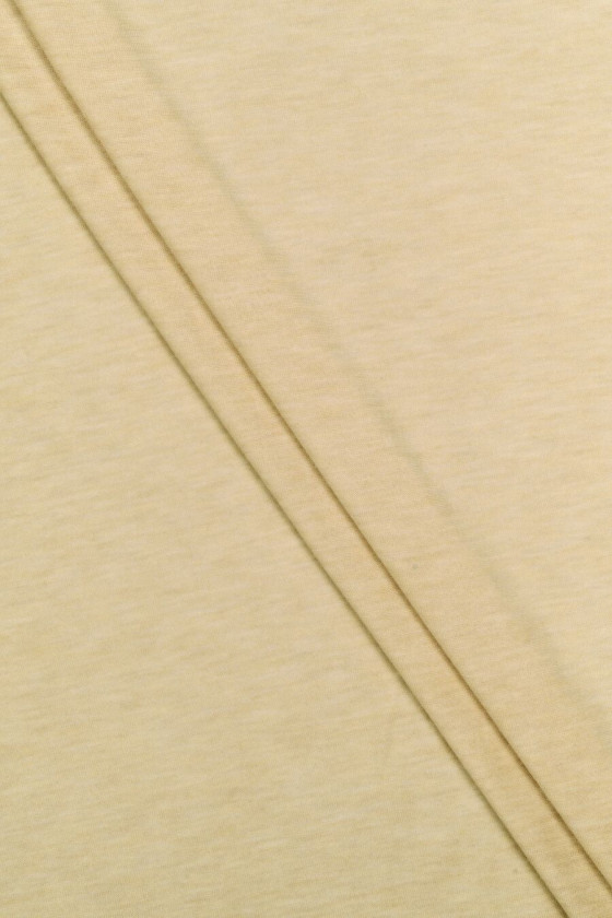 Itališkas megztas audinys, austas iš medvilnės ir poliamido, šviesios, dulkėtos geltonos spalvos. Megztas audinys yra vidutinio storio, minkštas, malonus liesti, elastingas ir turi blizgesį. Rekomenduojame prie palaidinių, viršūnių, marškinėlių.