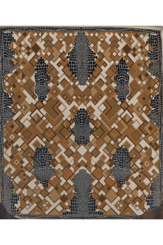 Itališkas georgette 100% viskozės cadi tipo kuponas, kurio matmenys 160 cm* 140 cm. Labai įdomus geometrinių ir gyvūnų motyvų derinys. Spalvos: juoda, smėlio, ruda.